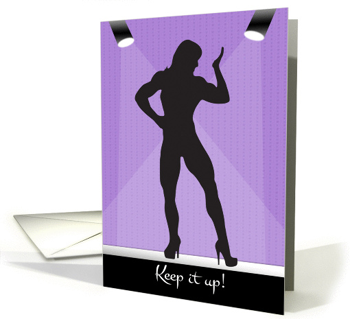 | Artist Notes: | A female bodybuilder on a purple stage, flexing during competition for this encouragement card. Design © 2015 Julia Bryant. |