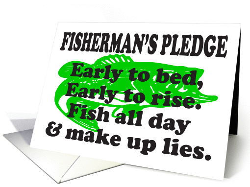 | Artist Notes: | Anyone who loves to fish will appreciate this humorous fishing greeting card. Check out the funny "Fisherman's Pledge: Early to be, early to rise. Fish all day & make up Lies" greeting card. Order yours today. |