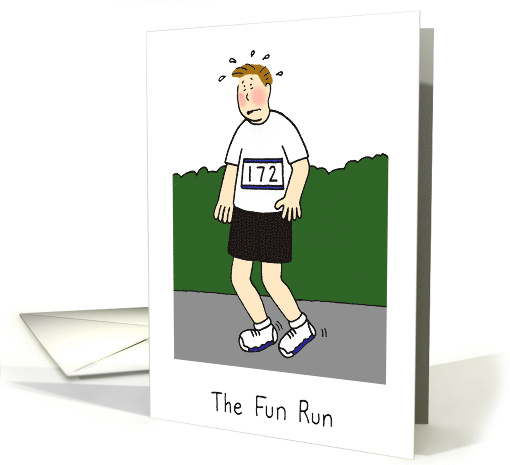 | Artist Notes: | Colourful cartoon of a man who is exhausted and in a running race (he has a number on his t-shirt). The words on the front say 'Fun Run'. Inside the card says :- 'Have a great run!' |