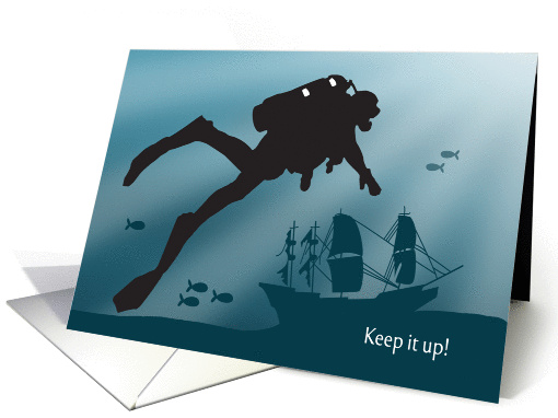 | Artist Notes: | A silhouette scuba diver around ship wreckage for a deep sea dive. Give someone training to dive this card for encouragement. Design © 2015 Julia Bryant. |