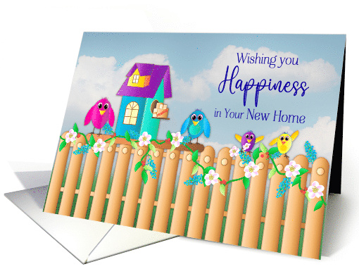 | Title: | New Home Wishing Happiness Birds and Birdhouse and Packing Boxes |