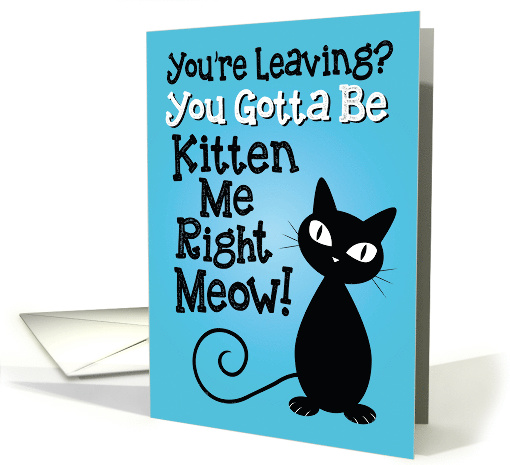| Artist Notes: | Wish someone a well in their relocation with this cute, illustrative cat card featuring the message, You're Leaving? You Gotta Be Kitten Me Right Meow! Inside can be customized with your own message |