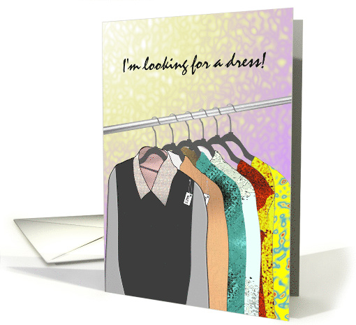 | Artist Notes: | A thank you for a wedding invitation. This fun cartoon illustration shows clothes on a rail. Looking for a new dress to attend the wedding! |
