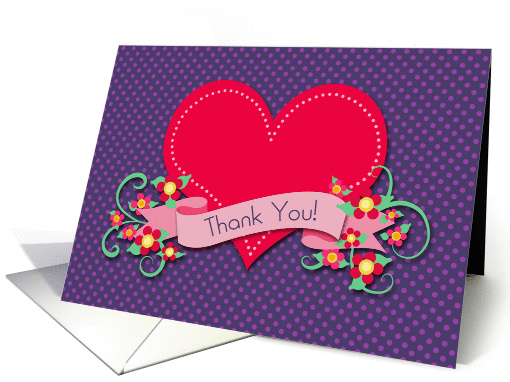 | Artist Notes: | Thank you card for a gift at Valentine's Day. With a deep purple with pink polka dotted background, pink banner and flowers over a red heart, this is a very nice thank you card. Art by Cherie |
