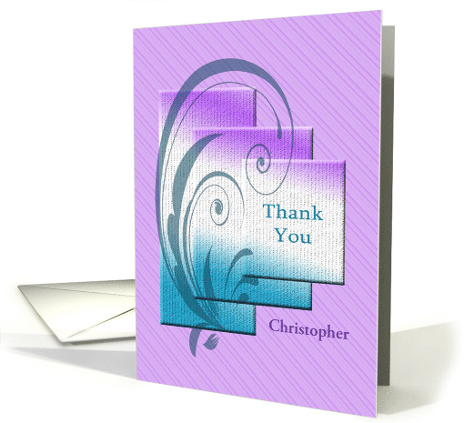 | Artist Notes: | An elegant thank you card. A lovely way to say thank you to a special person. Customize for any name. Three textured rectangles over a lilac striped background. A swirling organic design links them all. |