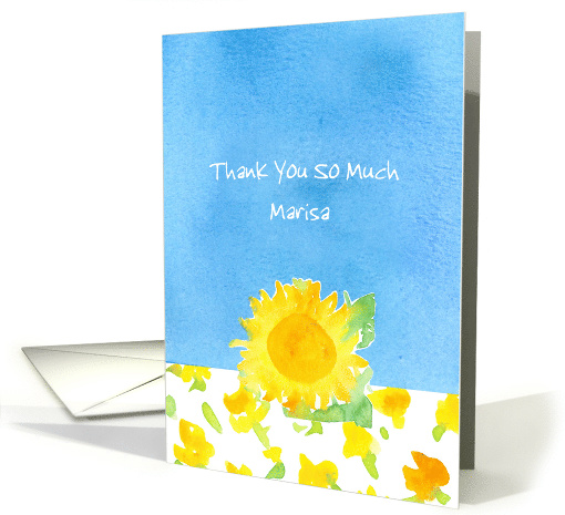 | Title: | Thank You Custom Name Yellow Sunflower Sky Blue Watercolor |