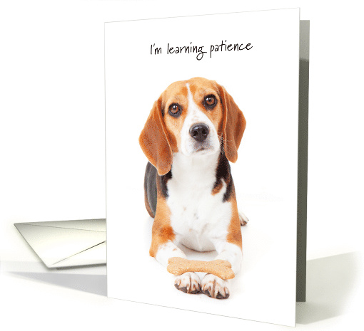 The family pet is sure to feel the absence of a child moving away to college. Missing the special feedings, walks, fetch and cuddle times. One of the top things college students miss are their pets! With none on campus and not permitted in the dorms this is no surprise. Send this adorable beagle dog patiently balancing a bone treat on his paws and patiently awaiting the students visit home.