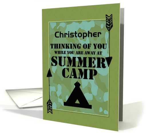 | Title: | Thinking of You Away at Summer Camp Custom Name Camo Arrows and Tent |