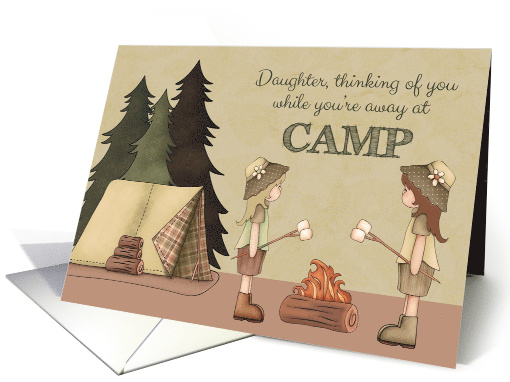 Daughter Summer Camp Thinking of You, Girl Campers, Campfire, Tent