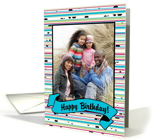| Title: | Birthday - Colorful Stripes and Dots Photo Card with Banner |