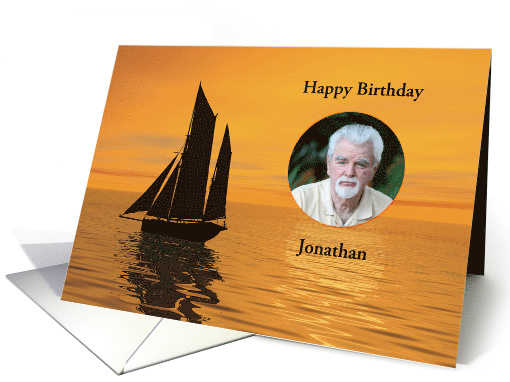 | Artist Notes: | A stunning silhouette of a yacht on the ocean with a fabulous orange sunset behind. add a picture and a name to make this a unique birthday card. You can change the inner verse of this card to add your own personal message. |