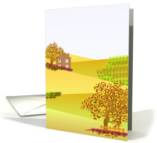The countryside is awashed in red, yellow, green, brown and gold - all the colors of Fall. A pretty birthday picture! This design is from a set of 4 - do take a look at the Spring, Summer and Winter birthdays. Tied up with a pretty ribbon, all 4 cards make a simple and lovely gift!