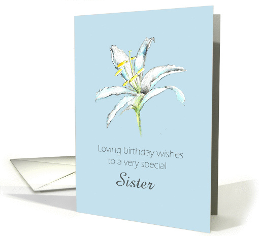 Title: | Happy May Birthday Sister White Lily Flower Pencil Drawing |