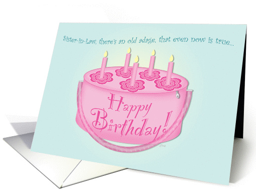 A whimsical birthday cake purse for the handbag lover on your birthday list! Please feel free to add, or change the inside text to make this card your own! (Cover text reads: Sister-in-Law, there's an old adage, that even now is true...)