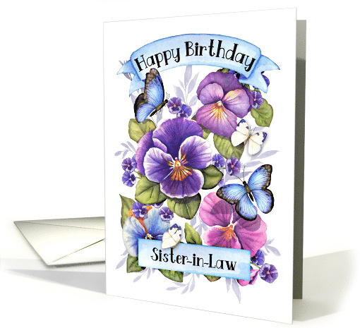 Birthday for Sister-in-Law with Hand Painted Pansies and Butterflies