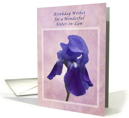 A striking purple iris against a stucco background makes for an eye catching image for this birthday card designed for a wonderful Sister-in-Law.