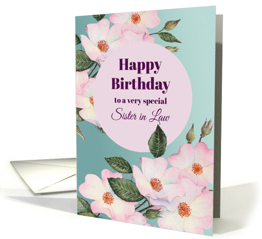 For Sister in Law on Birthday Watercolor Pink Roses Botanical Painting