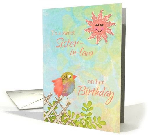 To Sister-in-Law on Birthday Bird on Fence with Sun