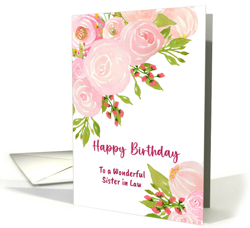 Happy Birthday Sister in Law Pink Roses Peony Flowers Floral Botanical