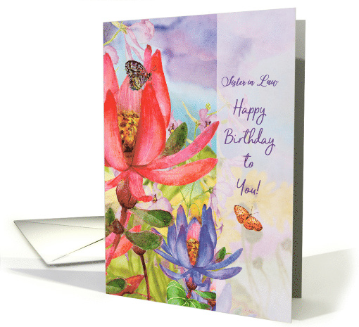 Send beautiful floral happy birthday greetings to your sister in law with this bouquet of colorful summer blooms. The design also features a couple of butterflies and a lovely purple sky.