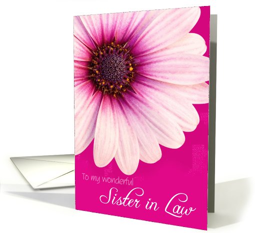 Sister in Law Birthday Card - Light Pink Flower against a Pink Background