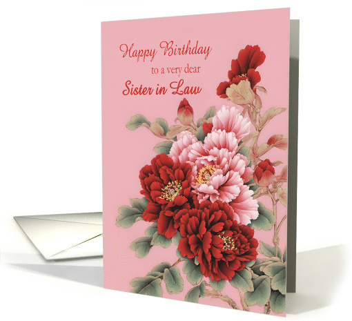 A delightful illustration of pink and red peonies to wish your sister-in-law a happy birthday day. This card is full of love, and elegant and classy at the same time.