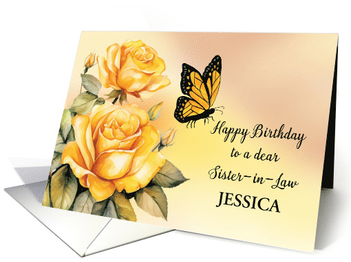 Sister in Law Customize Name Birthday Yellow Roses Monarch Butterfly