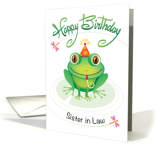 Sister In Law Green Frog Birthday With Hand Lettering And Dragon Flies