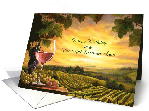 Sister in Law Happy Birthday Vineyard Glass of Wine Custom Text