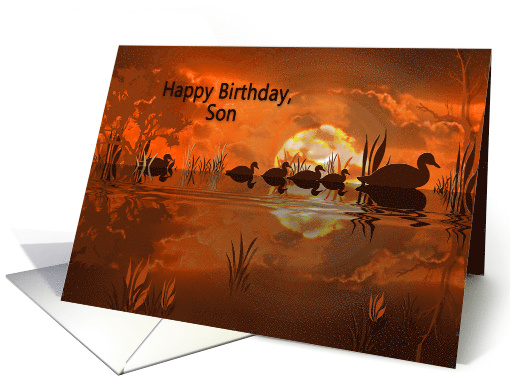 Ideal greeting for that nature lover who enjoys the tranquility of nature. Ducks swimming at sunset