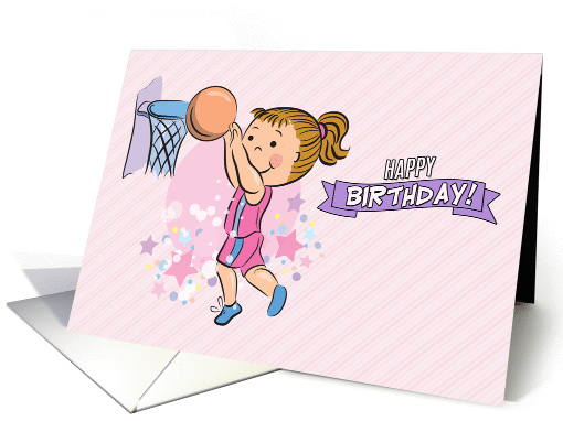 | Title: | Cartoon Girl Playing Basketball Birthday Card |
