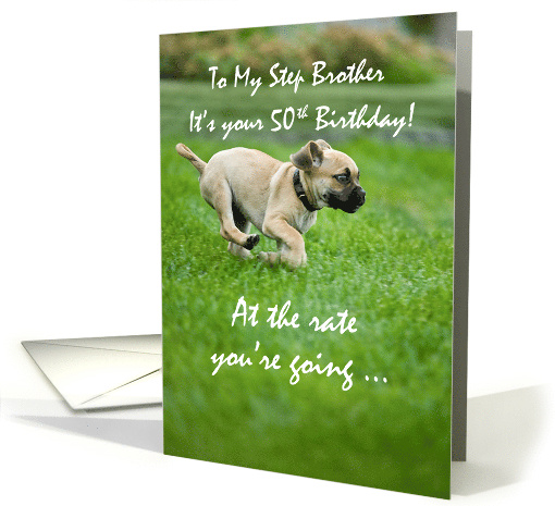 | Title: | Step Brother 50th Birthday Funny Puppy Dog Running |