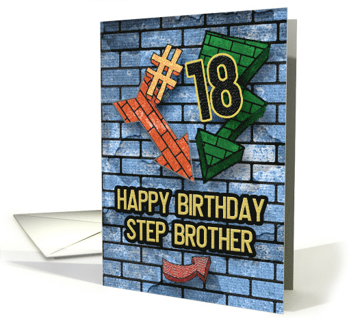 Happy 18th Birthday to Step Brother Bold Graphic Brick Wall and Arrows