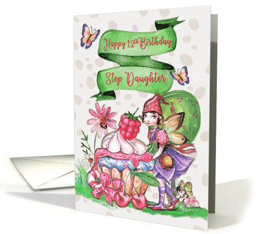 | Title: | Happy 12th Birthday to Step Daughter Fairy Cupcake and Flowers |
