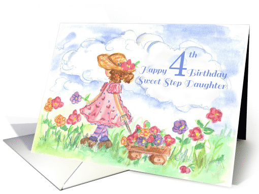 | Title: | Happy 4th Birthday Sweet Step Daughter Watercolor Art |