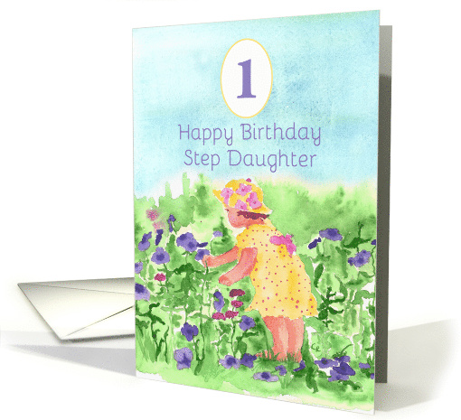 | Title: | Happy First Birthday Step Daughter Flower Garden Watercolor |