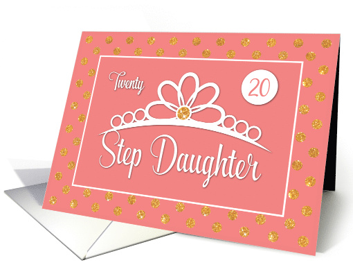 | Title: | Step Daughter 20th Birthday with Crown and Gold Look Dots on Peach |