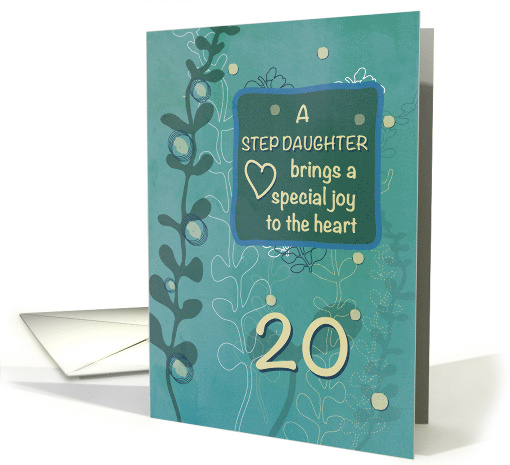 | Inside: | Your birthday is a good time to remind you of what a blessing you are and how greatly you are loved! Happy 20th Birthday, Step Daughter |