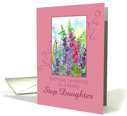 | Title: | Happy July Birthday Step Daughter Larkspur Flower Watercolor |