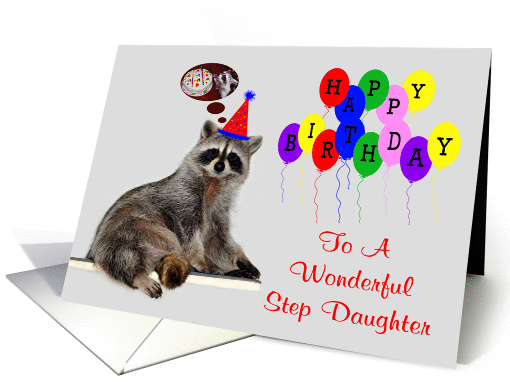 | Title: | Birthday To Step Daughter, Raccoon wearing a party hat |