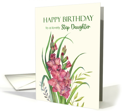 | Title: | For Step Daughter on Birthday Watercolor Peachy Gladioli Painting |