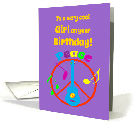 | Artist Notes: | A retro style girls birthday card with a peace sign, guitar and colorful music notes, to send wonderful wishes for a happy day. |