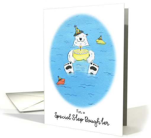 | Title: | Happy Birthday Special Step Daughter, Polar Bear in Water Holding Cake |