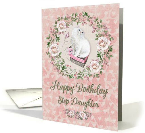 | Title: | Happy Birthday to Step Daughter Pretty Kitty Hearts and Flowers |