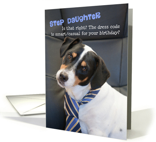 | Title: | Step Daughter Birthday Card - Dog Wearing Smart Tie - Humorous |