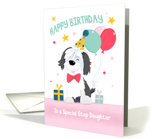 | Title: | Step Daughter Birthday Cute Dog with Balloons and Gifts |