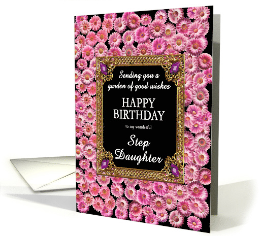 | Artist Notes: | A floral birthday card for your step daughter. This elegant birthday card showcases a delicate scattering of soft pink daisies, symbolizing beauty, grace, and joy. The light and airy floral design brings a touch of nature’s charm, perfect for celebrating a special day with warmth and love. The cheerful flowers evoke feelings of happiness and renewal, making it an ideal choice for sending heartfelt birthday wishes. |