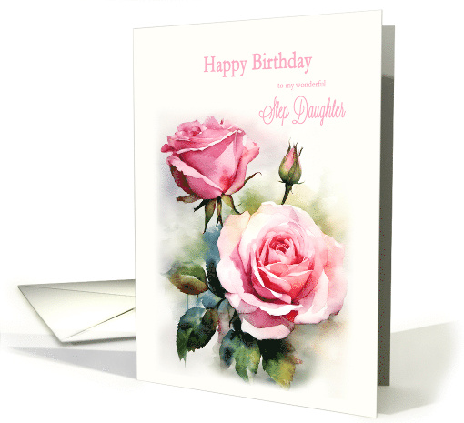 A birthday card for your step daughter. This beautiful birthday card features delicate watercolor pink roses, symbolizing love, grace, and admiration. The soft floral design perfectly captures the essence timeless love, making it a heartfelt way to celebrate her special day. Elegantly adorned pink roses, this card brings a touch of nature’s beauty to a birthday. The gentle hues and soft brushstrokes reflect the warmth and care she’s always given, making it a thoughtful and artistic gesture.