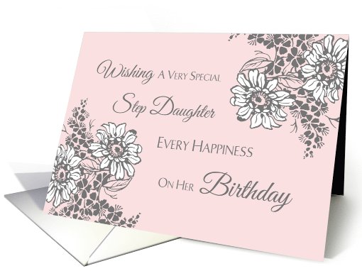 | Title: | Step Daughter Happy Birthday Card - Pink Grey Floral |