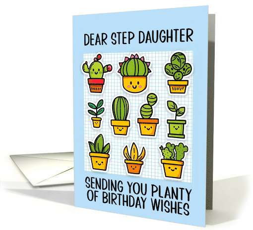 | Title: | Step Daughter Happy Birthday Kawaii Cartoon Cactus Plants in Pots |